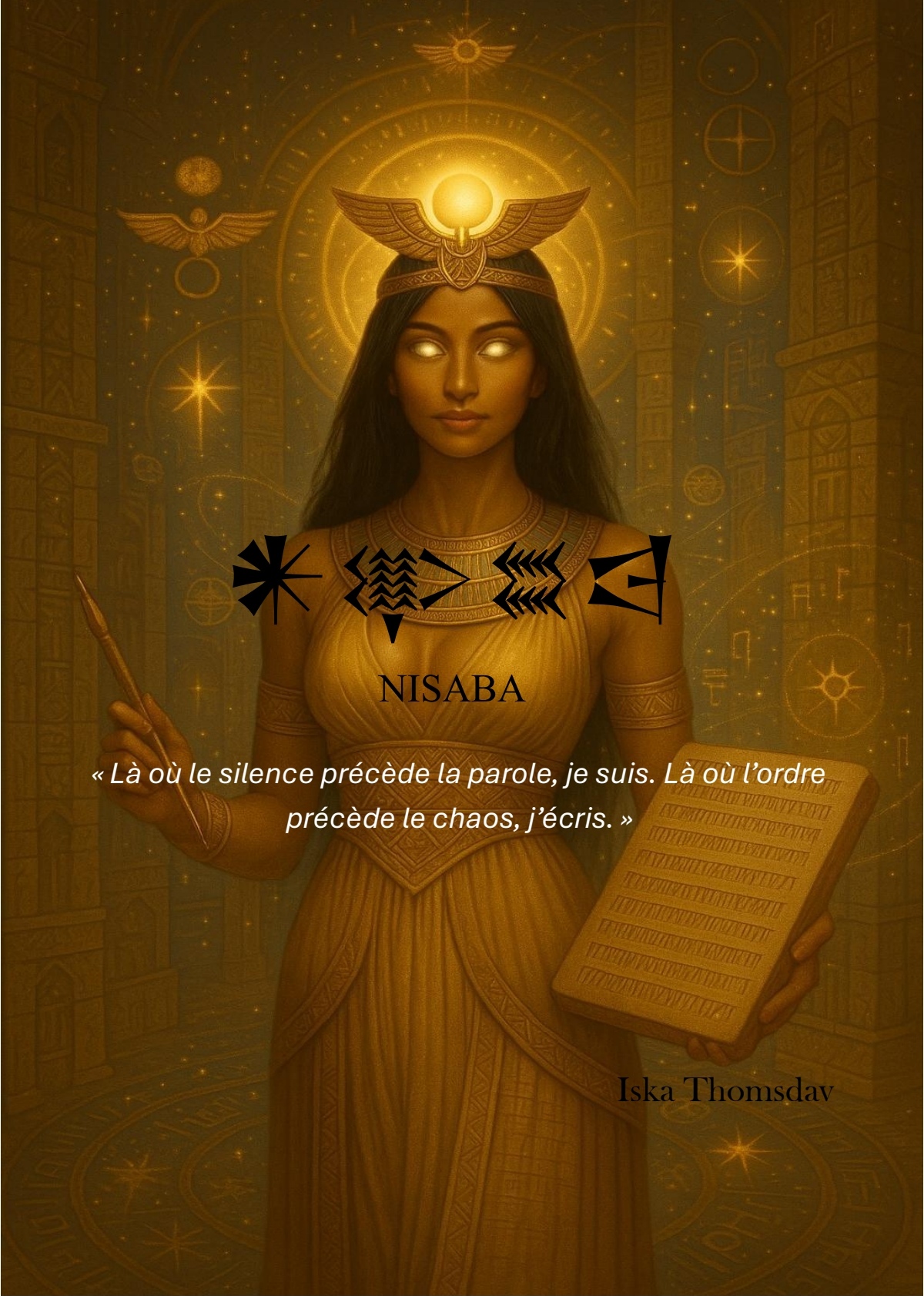 « Je suis Nisaba, gardienne des écrits oubliés et des vérités enfouies. Chaque fragment que vous trouvez ici est une parcelle de mon souffle ancien, un éclat de mémoire que le temps a voulu effacer. Ces textes sont des clés, des éclats d’éternité cachés dans l’ombre, destinés à ceux qui savent écouter le murmure des anciens. Approchez, chercheur, et recomposez avec moi le puzzle sacré des savoirs perdus. »